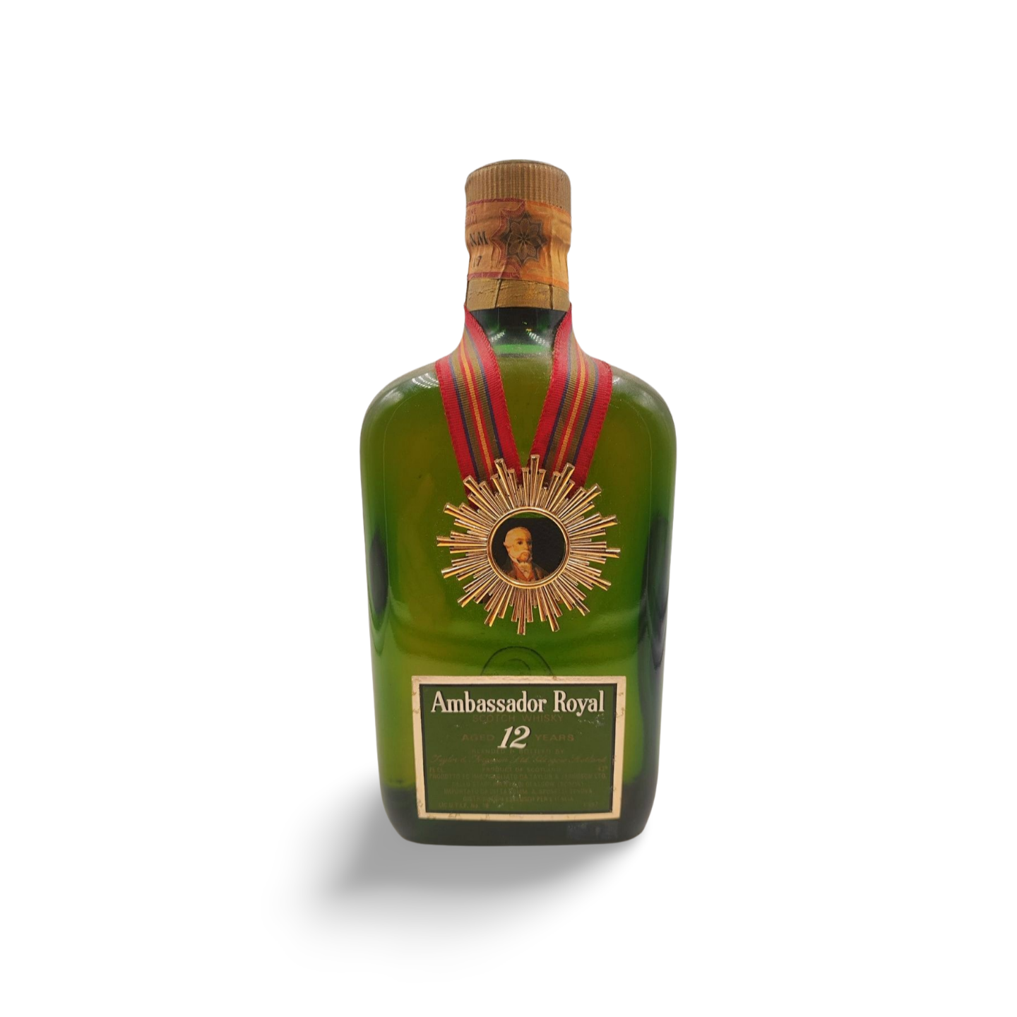 Bottiglia sigillata, età 12 anni, imbottigliatore Taylor & Ferguson. Classificazione whisky scotch. Invecchiato 12 anni. Questo prodotto è stato imbottigliato per il mercato italiano e importato. Questa bottiglia da 75 cl si stima sia stata importata agli inizi degli anni 80